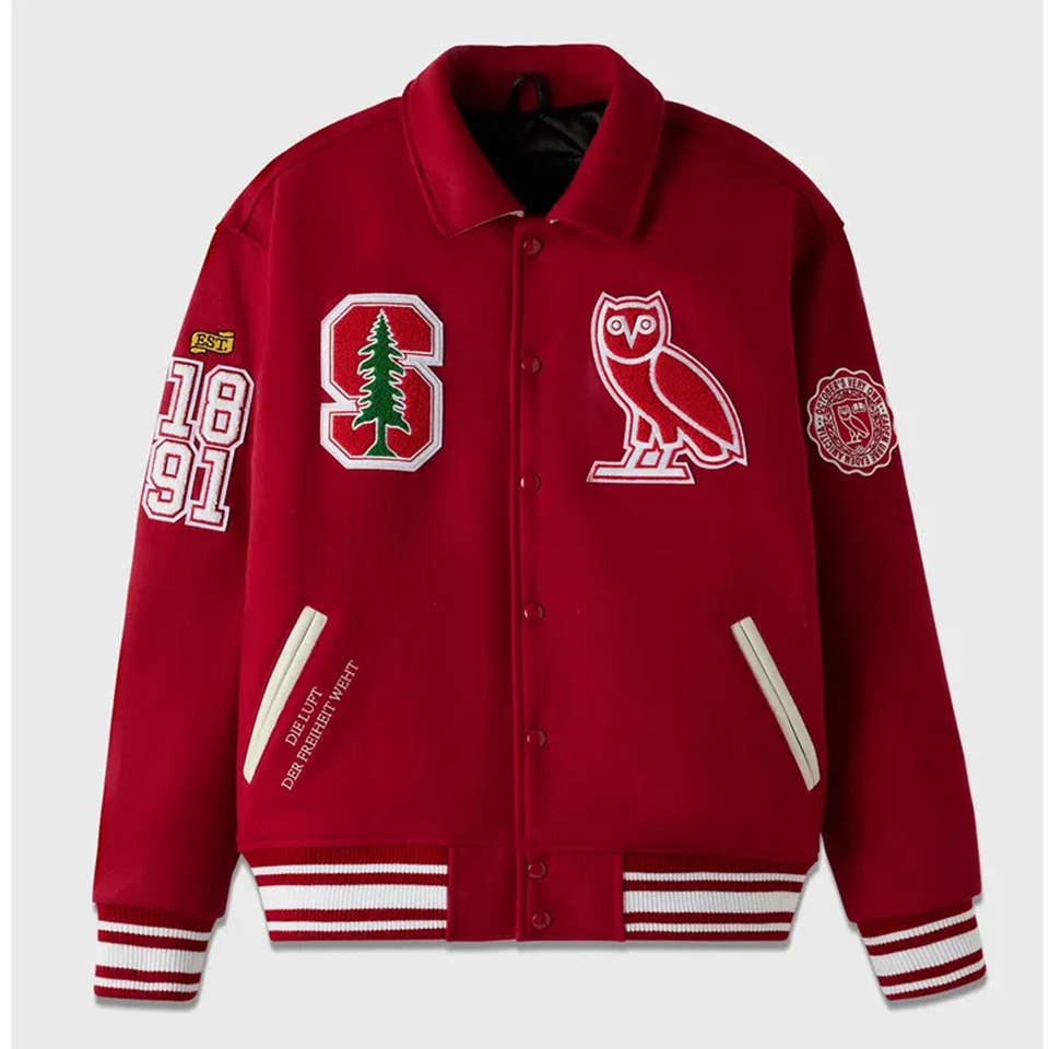 Veste universitaire personnalisée de l'Université de Stanford à manches longues avec poignets côtelés, veste de collège Letterman en tissu 100% laine
