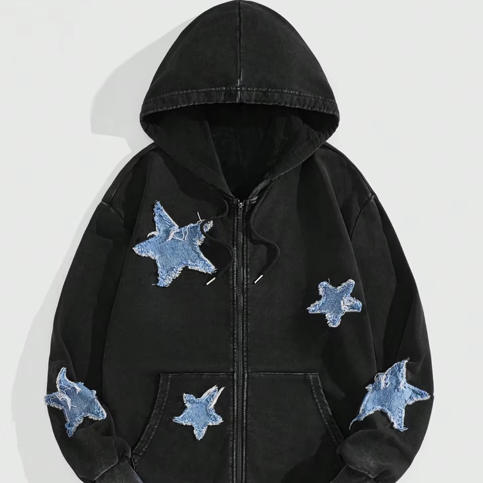 Sweat à capuche oversize pour homme, broderie étoile personnalisée effet vieilli, délavage acide, 100% coton, logos entièrement personnalisables, streetwear décontracté, livraison rapide