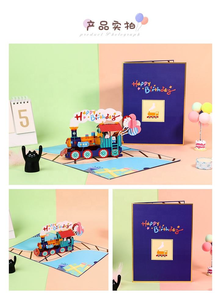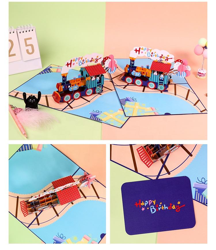Custom Steam Train 3D Birthday Pop-up Card Retro Train Greeting Cards Birthday Pop up Gift Card with Envelope for Dad Husband