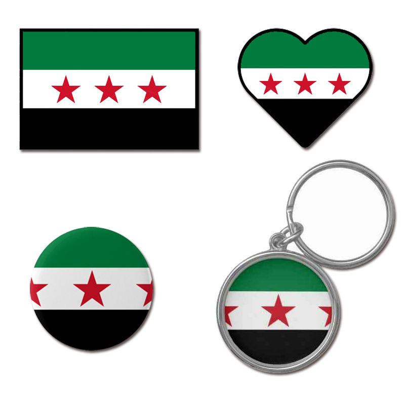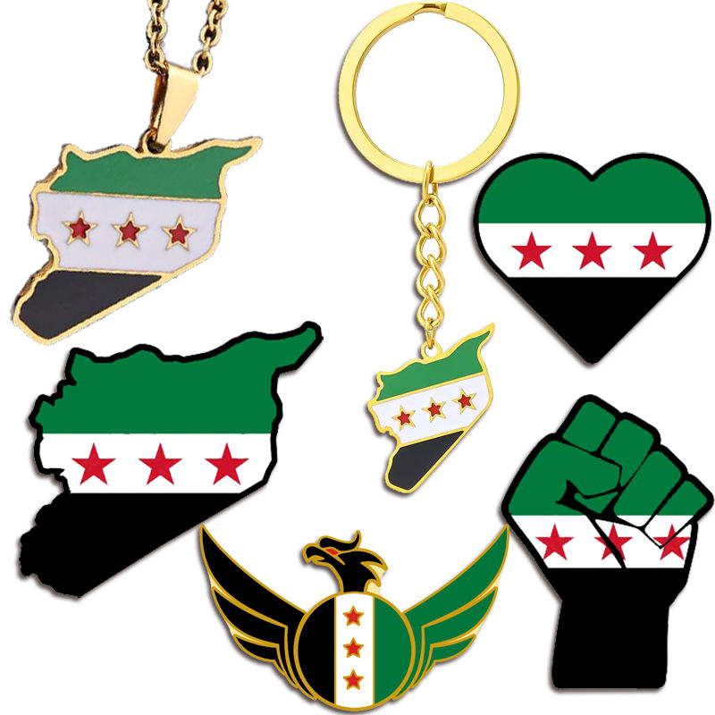 Autocollant personnalisé bracelet collier porte-clés broche insigne revers émail syrie carte drapeau pour vert liberté révolution syrie drapeau broche