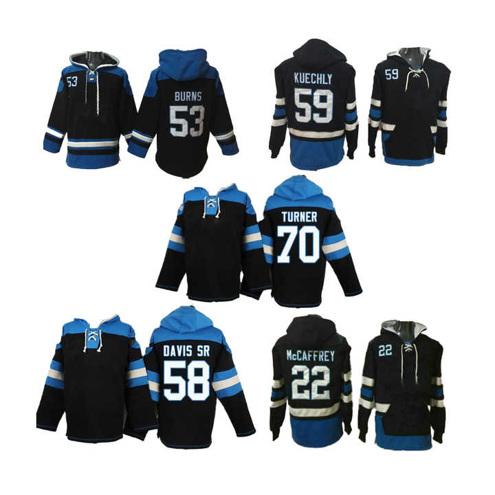Sweat à capuche personnalisé brodé avec les numéros 1 Newton, 22 McCaffrey, 53 Burns, 58 Davis, 59 Kuechly, Carolina American Football, à lacets