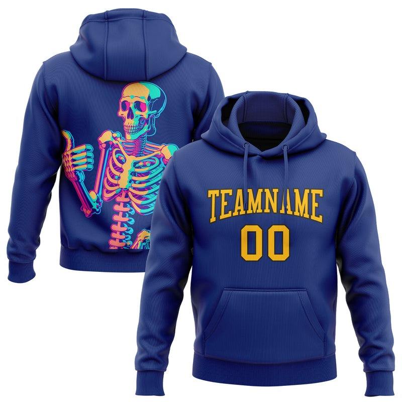 Personnalisé Cousu Royal Or-Noir 3D Crâne Mode Sports Pull Sweat À Capuche