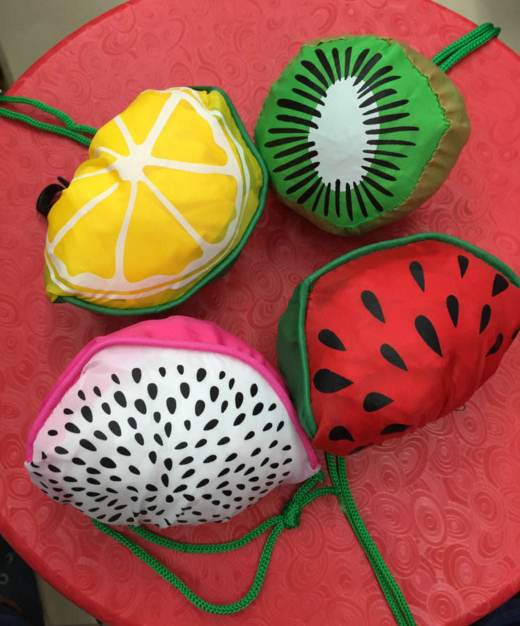 Pochette en nylon polyester léger et imperméable en stock personnalisé sac d'épicerie fourre-tout pliable en forme de fruit tête d'animal vente en gros