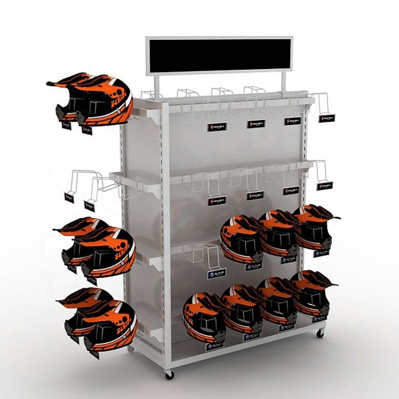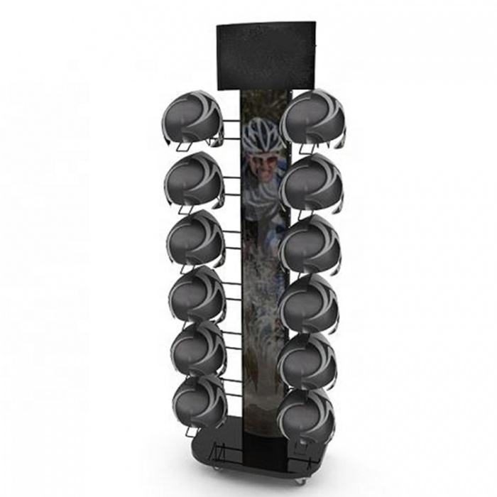 Magasin personnalisé Casque de vélo électrique moderne au sol Casque de moto Ski Golf Casquette en métal Présentoir Stand Articles de sport Sécurité