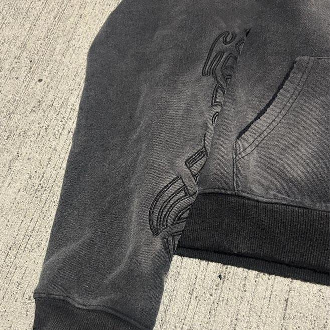 Custom Street Wear Sun Faded Hoodie Cordless Wool Embroidery logo Hoodie Vintage Acid-washed Zipper Hoodies for Men