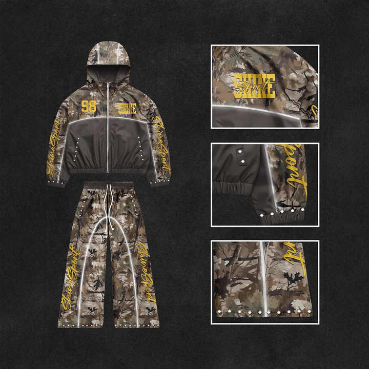 Survêtement surdimensionné en camouflage streetwear personnalisé, survêtement en nylon, coupe-vent en polyester, survêtements imperméables pour hommes et femmes
