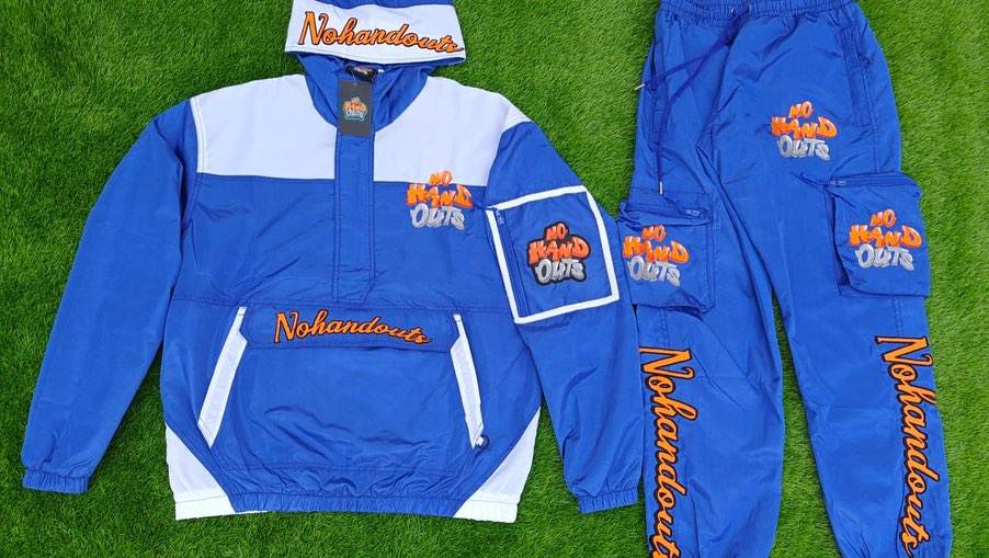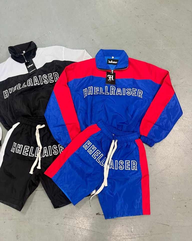 Streetwear personnalisé Survêtement à blocs de couleurs Broderie Survêtement Patchwork Réfléchissant Coupe-Vent Nylon Veste et Short Ensemble Hommes