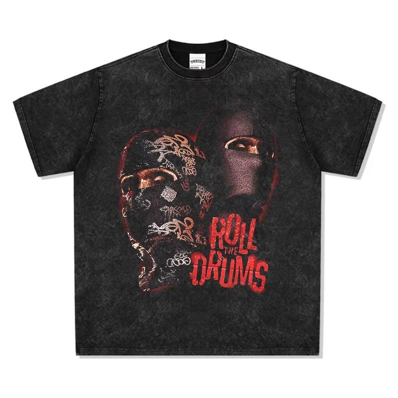 T-shirts pour hommes personnalisés, style streetwear, avec strass, design vintage, effet délavé, coutures réversibles, impression graphique DTG, effet usé