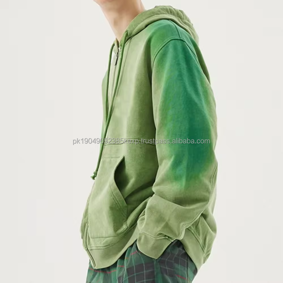 Custom Streetwear Sun faded Hoodie Drop Shoulder Heavyweight Oversized Zip Up Hoodies patch embroidery Unisex