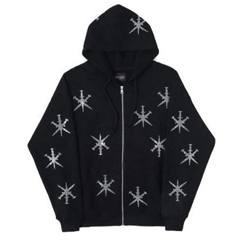 Streetwear personnalisé sans doublure éponge française strass coton fermeture éclair poids lourd délavé acide pierre lavé Vintage à capuche pour hommes