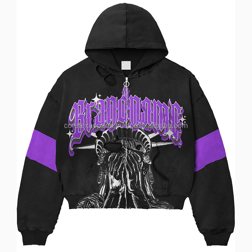 Sweat à capuche surdimensionné en molleton français de haute qualité, avec strass et délavage acide, style streetwear personnalisé