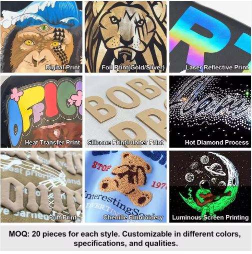Méthodes d'impression:Impression Puff, Impression de Chaleur-transfert, Impression numérique, IMPRESSION D'ÉCRAN DE SOIE