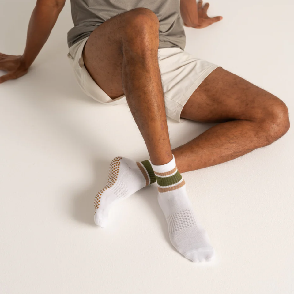 Chaussettes de Pilates tricotées à motif rayé et à carreaux personnalisées, antidérapantes avec semelle en silicone, fabricant de chaussettes de yoga et de barre de Pilates ODM