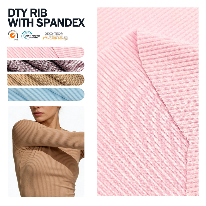 Tissu tricoté côtelé DTY extensible en polyester, élasthanne et Lycra, à rayures personnalisées 1x1, 2x1, 3x2, 2*2, à maille grossière, pour poignets et ourlets