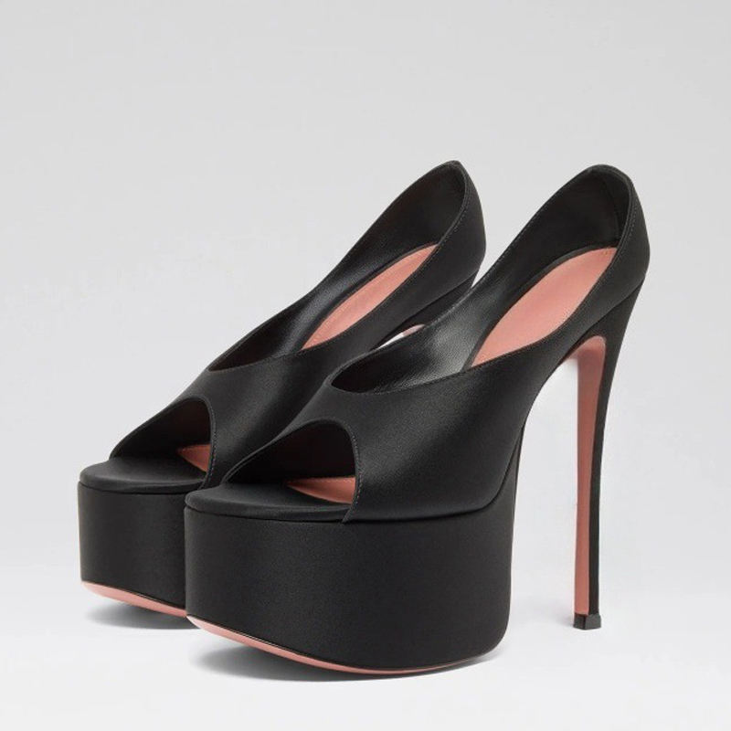 Sandales à plateforme épaisse et talons hauts fins, style personnalisé, à bout ouvert, sexy, pour femmes, grandes tailles 45, pour pieds larges