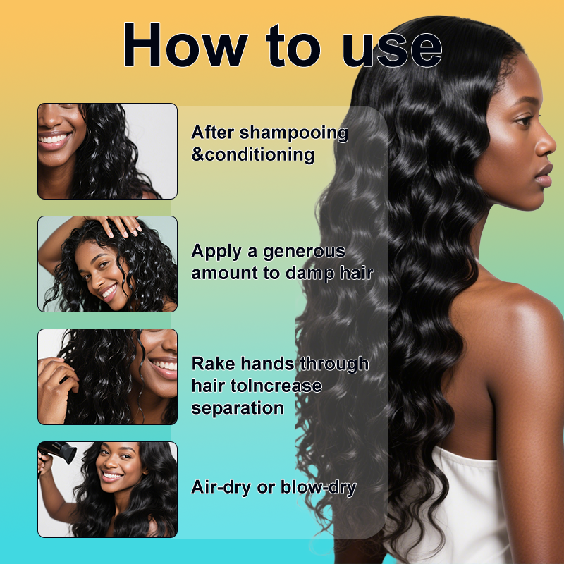 Fonction:Améliore et définit les boucles, crépus, hydrate les cheveux et le style