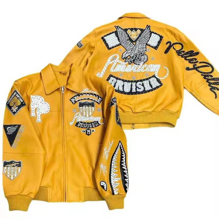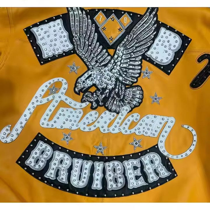 Blouson universitaire homme personnalisé et élégant en toile, cuir véritable, imperméable, respirant, avec broderies et écussons en strass sur le devant, style classique