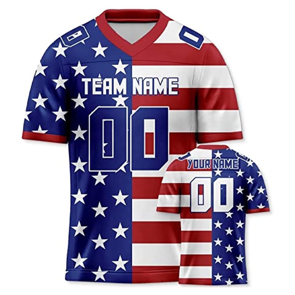 Maillot de football drapeau américain personnalisé sublimé impression numéro de nom d'équipe chemises de football personnalisées pour hommes femmes