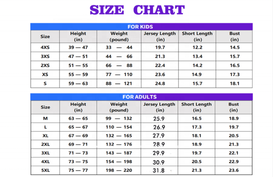 Type de motif:Numéros de l'équipe, Nom du joueur, Nom de l'équipe, Impression
