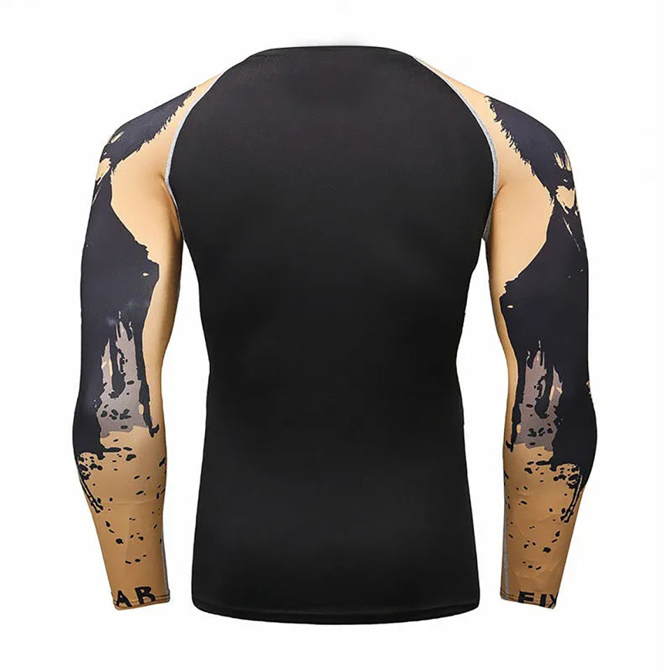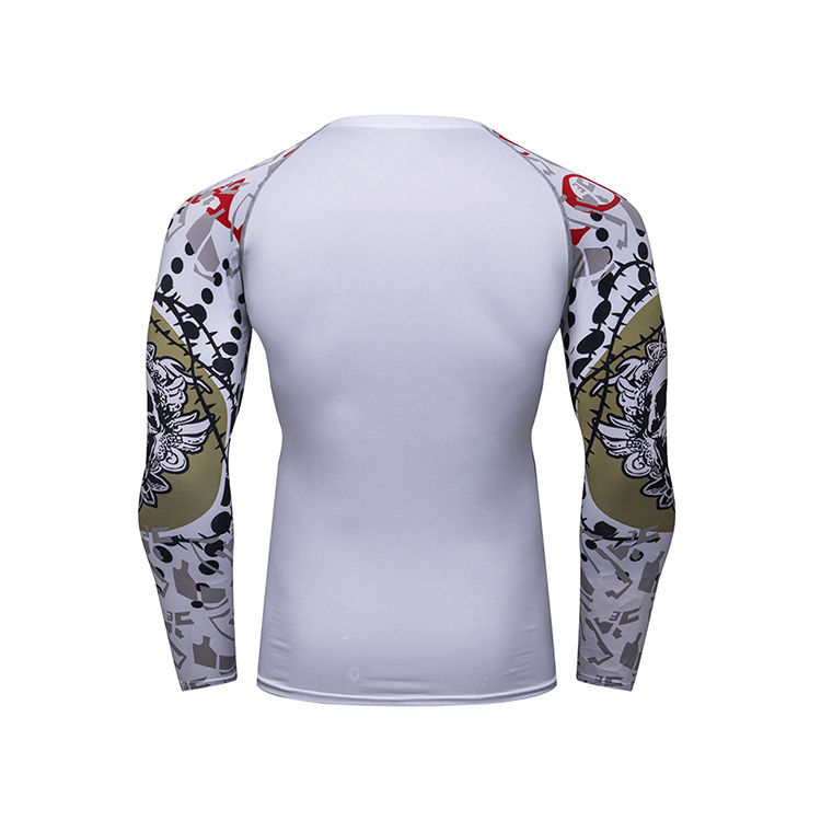 T-shirt de compression à sublimation personnalisé, logo sur le devant, manches longues, spandex/nylon, haut d'entraînement, fitness, gym, rash guard