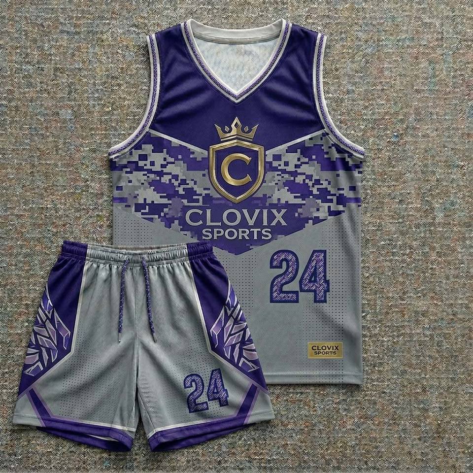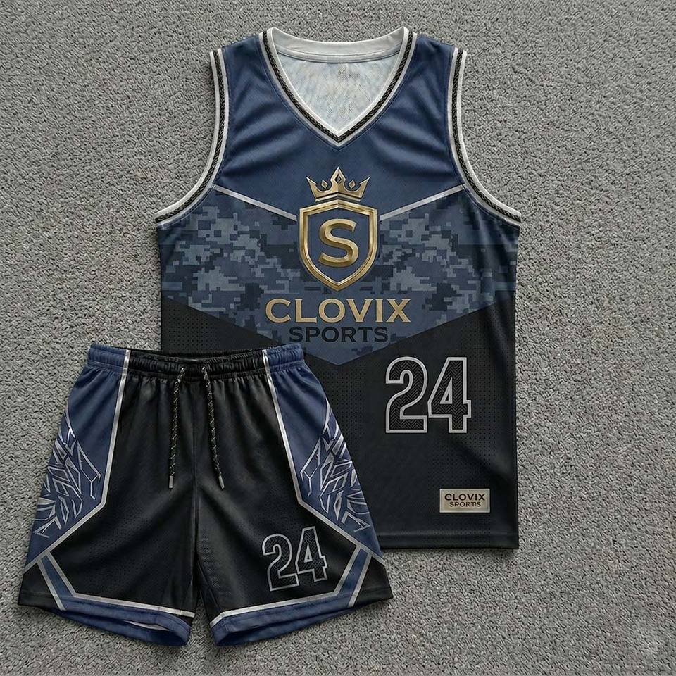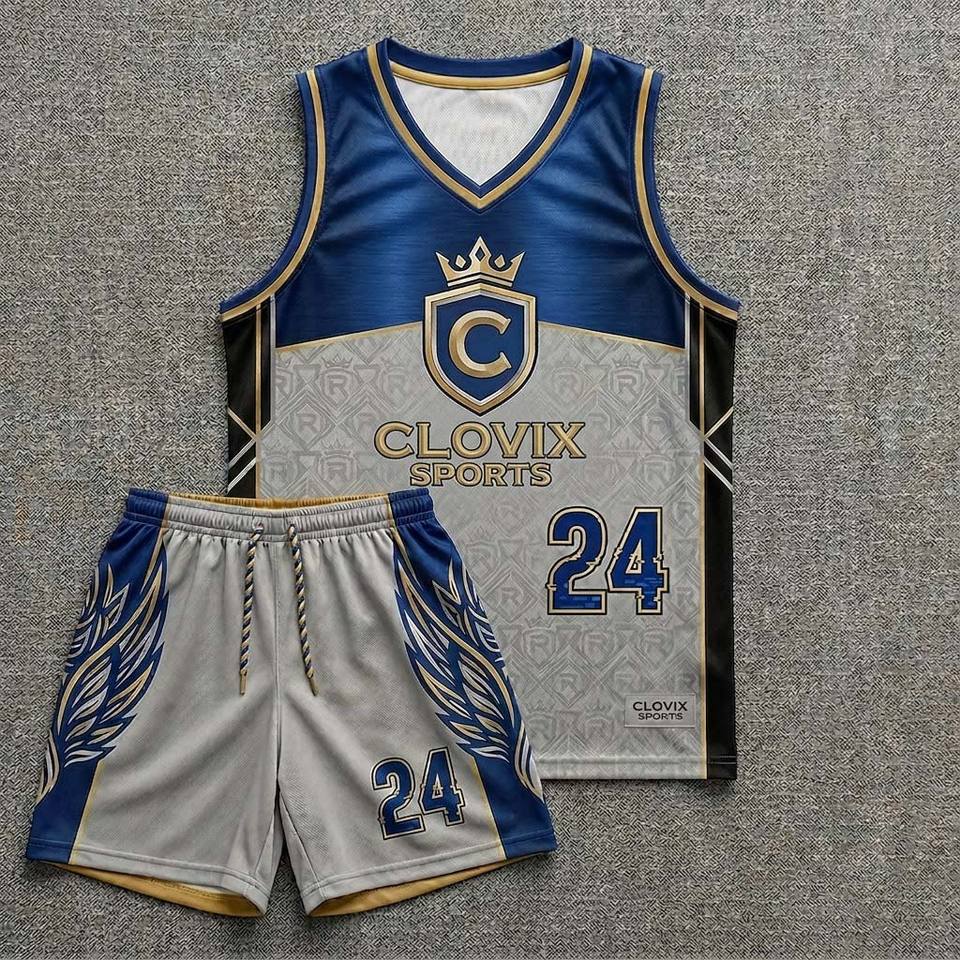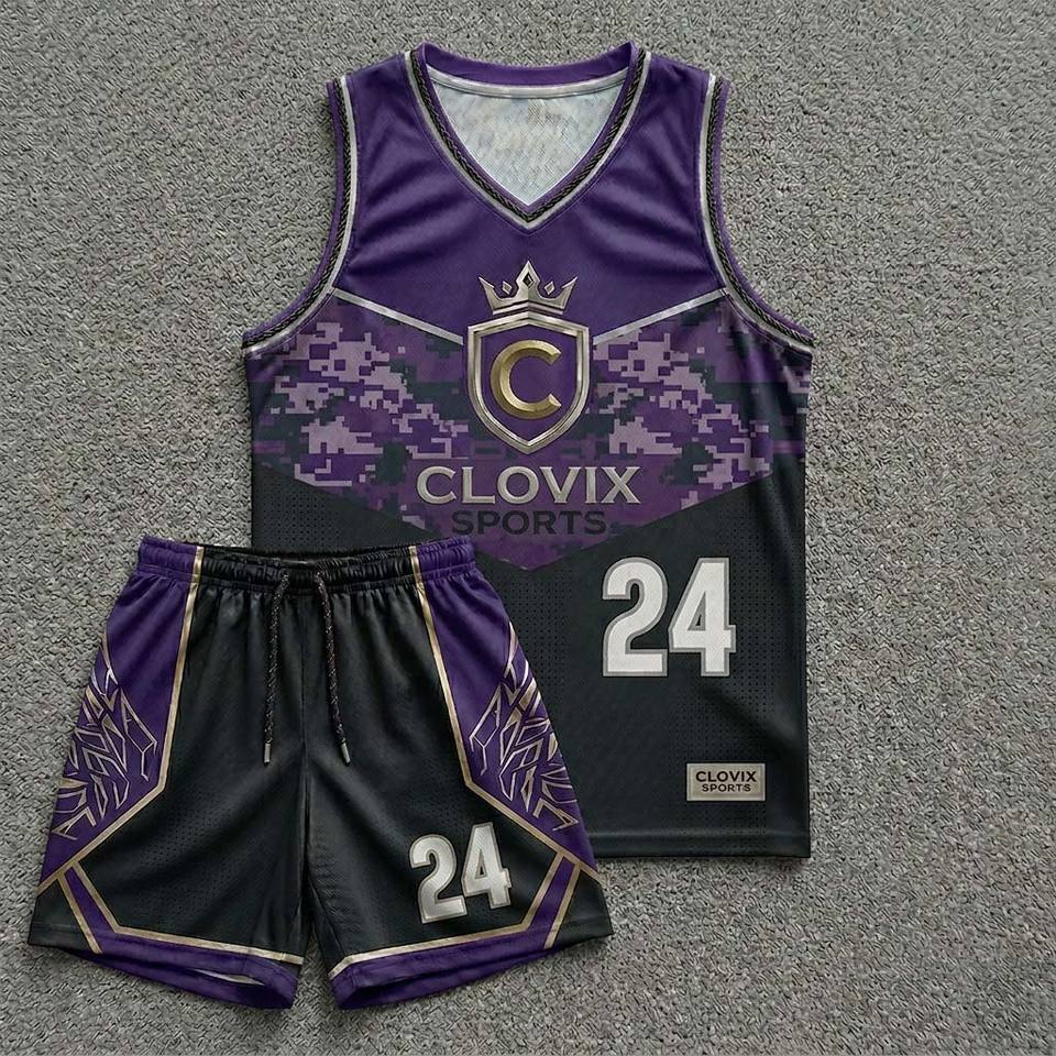 Ensemble d'uniformes de basketball personnalisés par sublimation – Meilleur prix de gros – Maillot et short de basketball pour hommes Clovix Sports