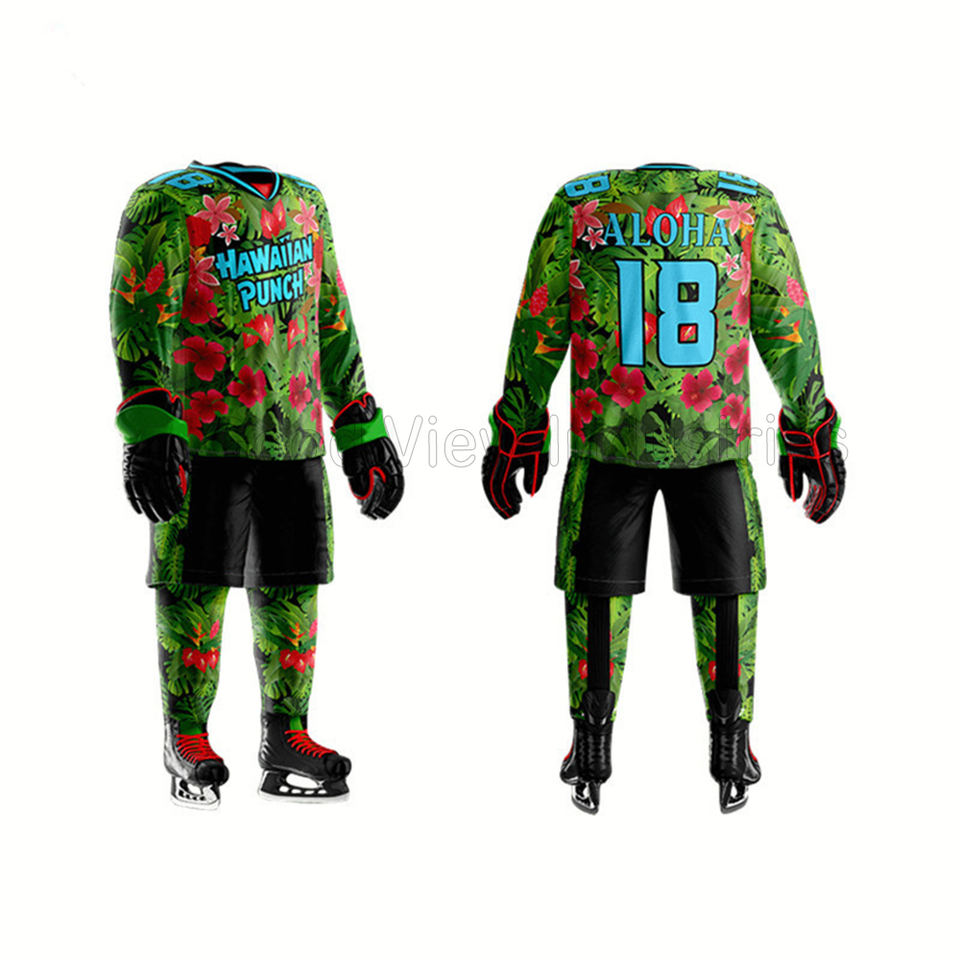 Uniforme de Hockey sur glace personnalisé par Sublimation, uniformes de Hockey sur glace, vert et noir, avec chaussettes en Jersey et pantalon, vente en gros, nouvelle collection