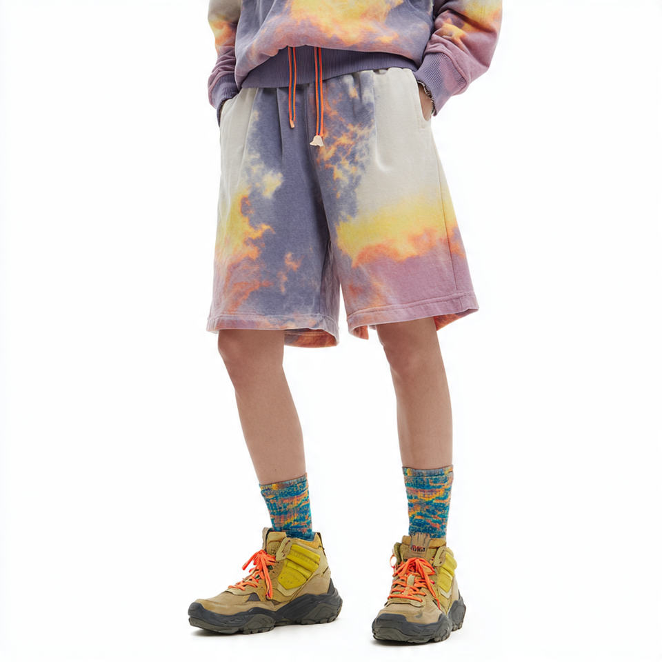Ensemble de survêtements personnalisés par sublimation pour femme : shorts de jogging et sweats de haute qualité imprimés tie-dye, effet délavé, pour l'hiver