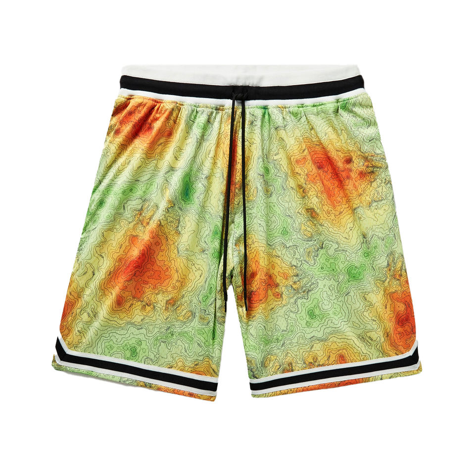 Shorts de basketball personnalisés en dentelle par sublimation pour hommes, respirants, en maille, streetwear, imprimés numériquement, rayures fantaisie, sport, 100% polyester