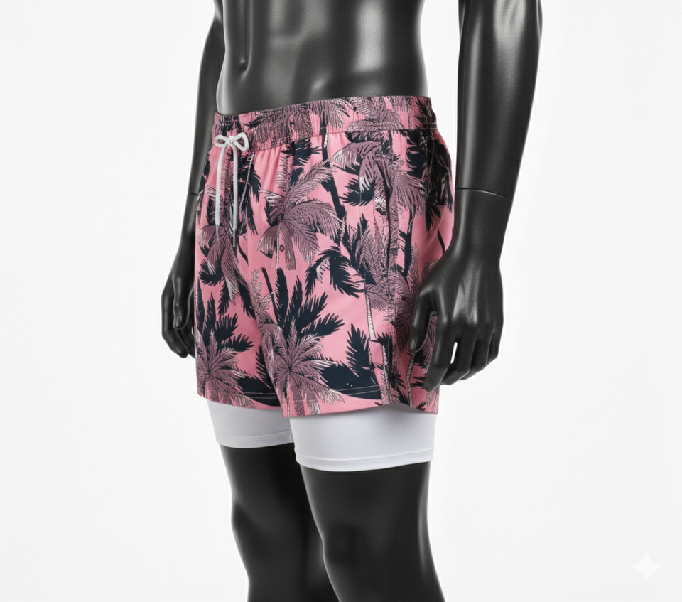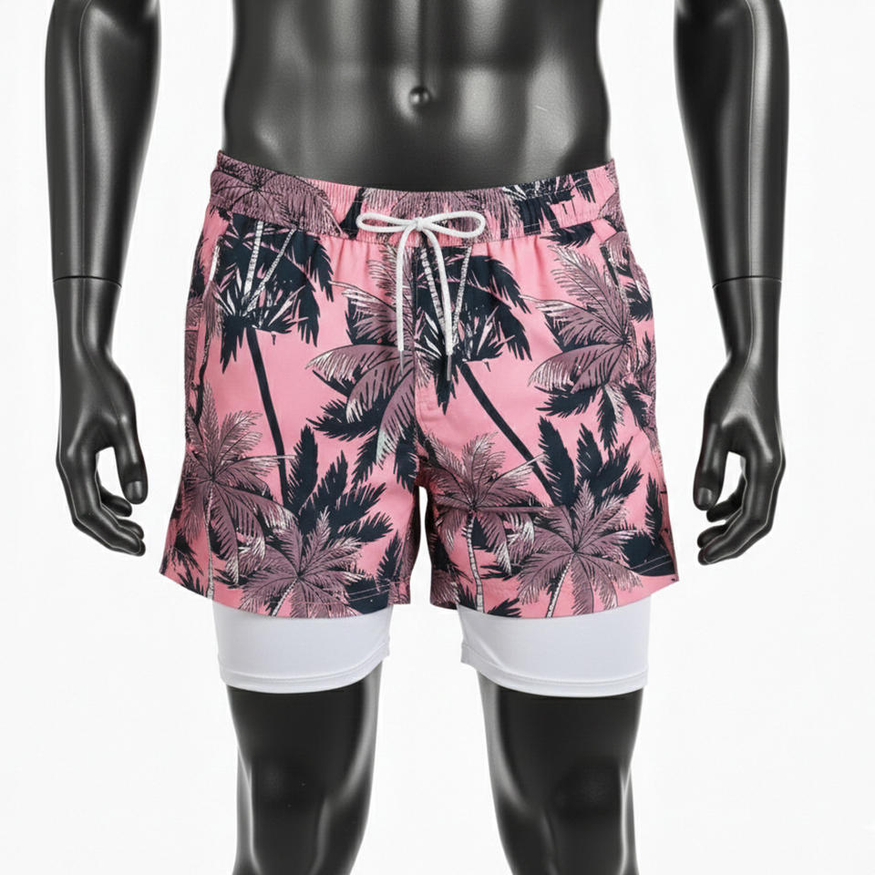 Shorts de plage personnalisés pour hommes en satin 100% polyester, 2-en-1 avec leggings de compression intégrés, tendance, séchage rapide, vêtements de plage