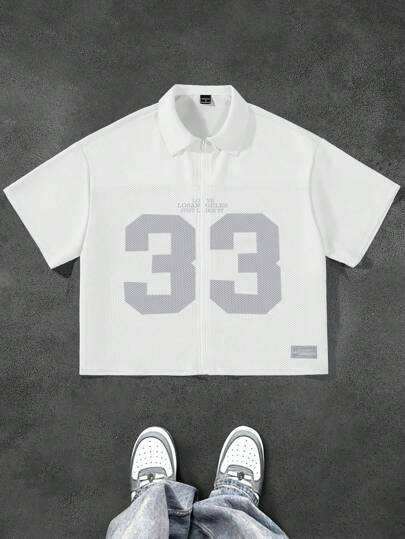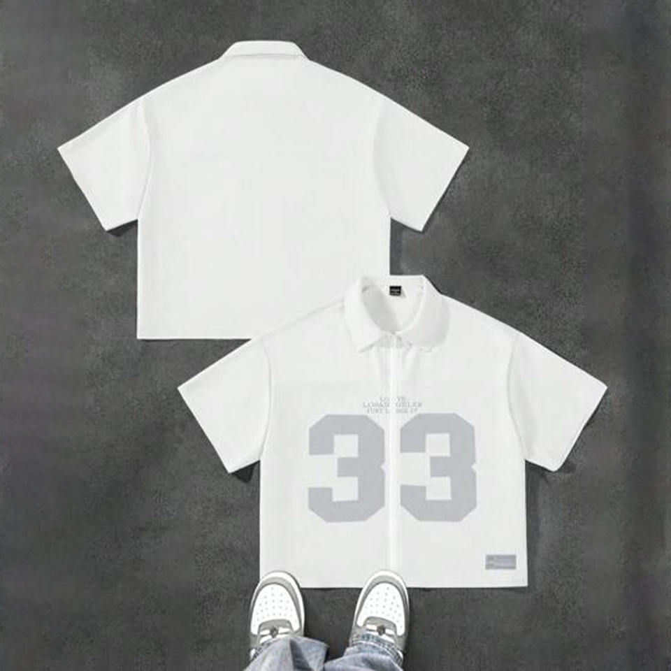 Chemise à fermeture éclair surdimensionnée blanche avec graphisme personnalisé par sublimation, vêtements de mode streetwear en gros