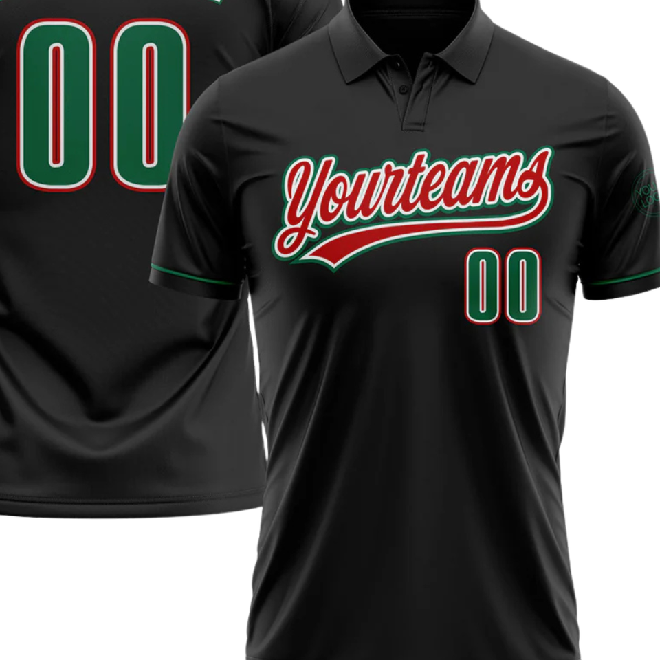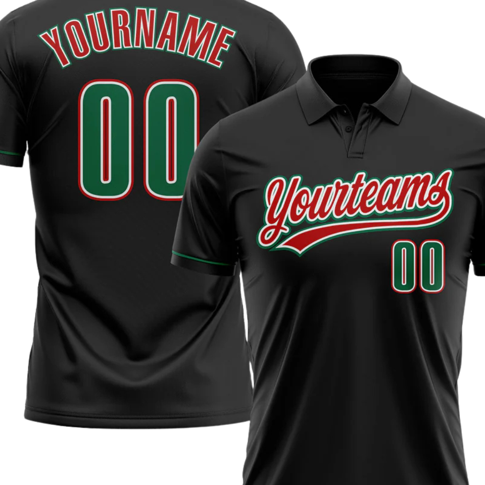 Polo personnalisé par sublimation, nom et numéro d'équipe personnalisés, polo noir imprimé avec nom et numéro pour l'équipe