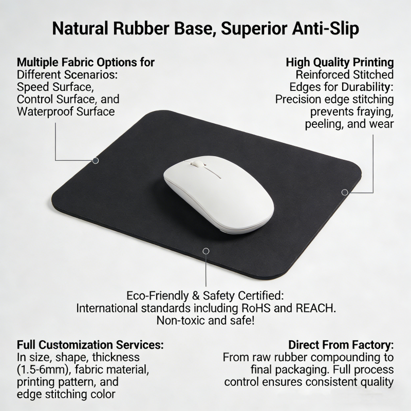 Tapis de souris gaming grand format avec base en caoutchouc personnalisée et bords cousus