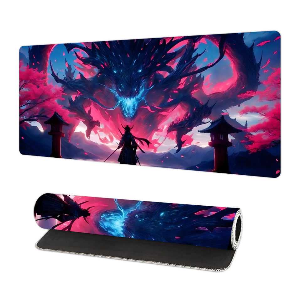 Tapis de souris personnalisé avec impression par sublimation, motif abstrait de dragon, base en caoutchouc, grand tapis de souris pour jeux avec bords cousus pour clavier et souris