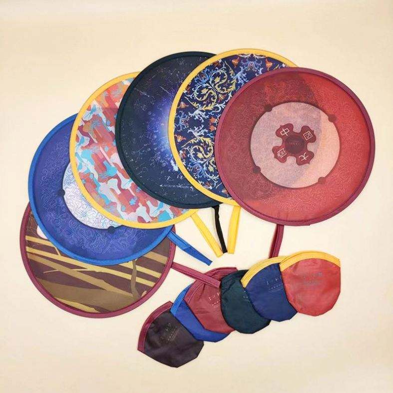 Ventilateur de poche pliable personnalisé imprimé par sublimation, ventilateur flexible en forme de frisbee