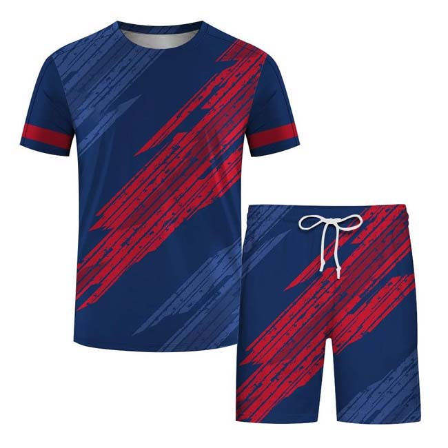 Ensembles T-shirts et Shorts Homme Grande Taille Personnalisés par Sublimation, en Coton Tricoté Respirant à Séchage Rapide, Couleurs Personnalisables, Style Urbain Estival