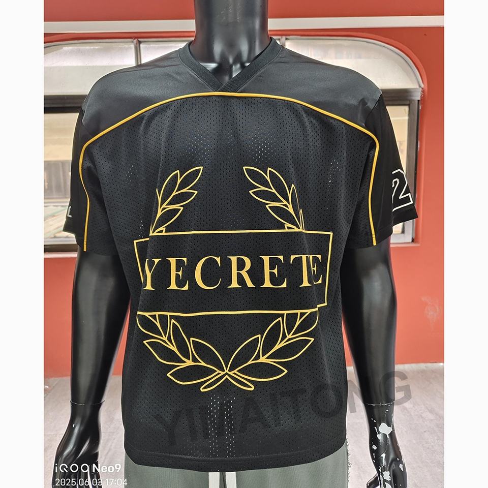 Vêtements de sport de haute qualité avec impression par sublimation personnalisée T Shirt rétro de football en maille satinée, col en V pour hommes