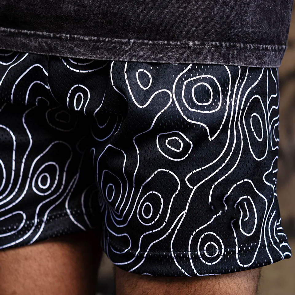 Shorts de topographie en maille avec impression par sublimation personnalisée pour hommes-Shorts de course noirs pour hommes nouvellement arrivés