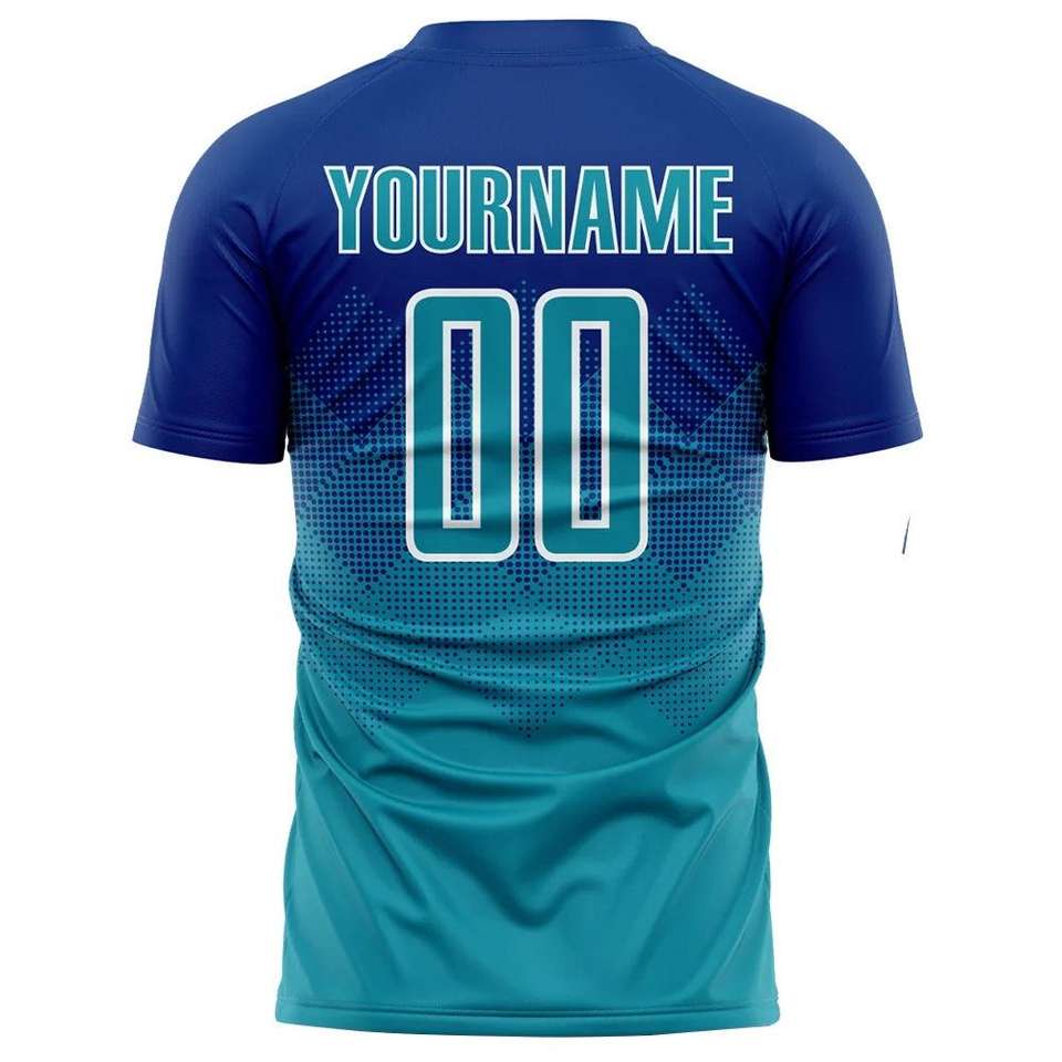 T-shirt de sport personnalisé par sublimation, dégradé bleu turquoise, maillot d'équipe avec impression du nom et du numéro