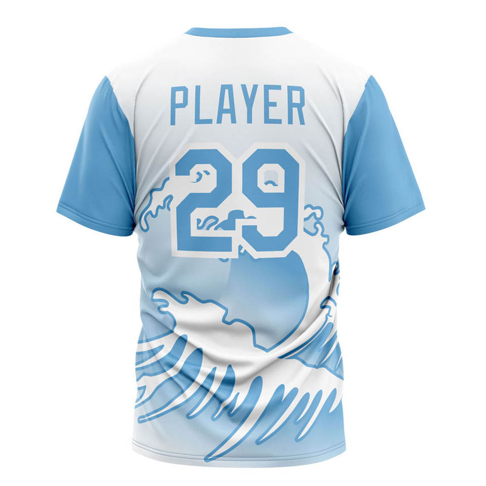 T-shirt d'entraînement personnalisé pour équipe | T-shirt graphique bleu ciel à motif vague | Vêtements de sport sublimés numéro 29 | Haut de sport respirant et à séchage rapide