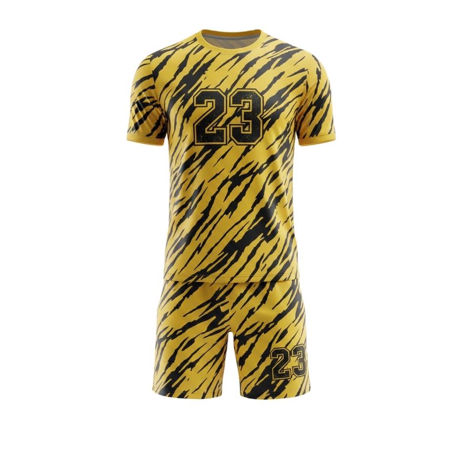 Ensemble de maillots de football jaunes personnalisés par sublimation, motif rayé noir tigre 23, respirant, uniforme d'équipe de football, tenue de sport pour hommes