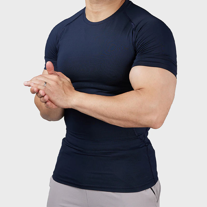 Sublimation personnalisé Logo séchage rapide respirant col rond coupe ajustée compressée sous-vêtements de course pour hommes polyester/coton T-shirt de gymnastique DDP