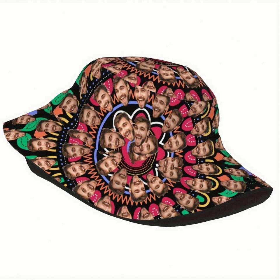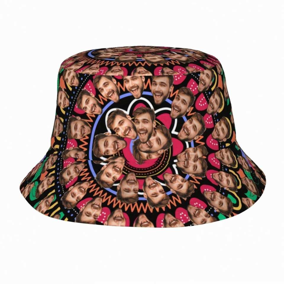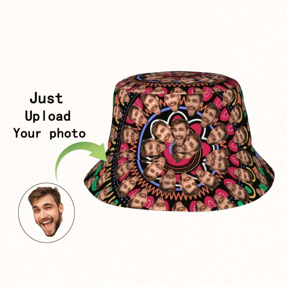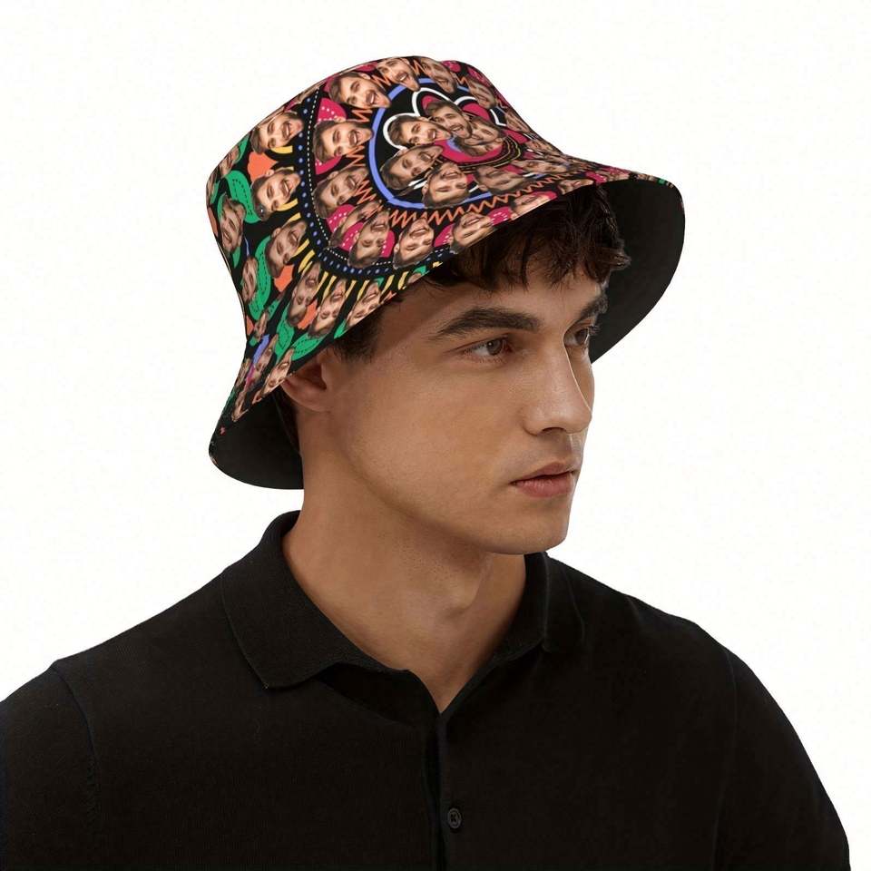 Chapeau Bob Personnalisé pour Hommes et Femmes, Motif Dessin Animé Dessiné à la Main, Idéal pour l'Été, la Plage et les Voyages, Chapeau Photo Personnalisé pour Aventures en Plein Air