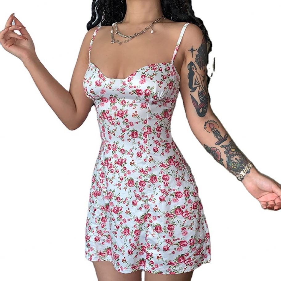 Robes mini pour femmes, personnalisées, décontractées d'été, à fente haute, sans bretelles, à imprimé floral, ajustées, élégantes et sexy