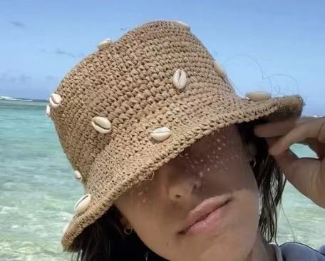 Chapeau de soleil en paille raphia crocheté à la main pour enfants, style mode estivale personnalisé, avec coquillages