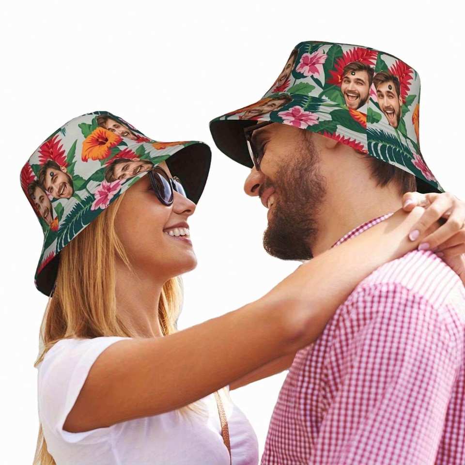 Casquette de pêcheur personnalisée pour l'été, chapeau bob personnalisé, motif feuille de dessin animé, chapeau de plage amusant pour hommes et femmes, créez votre propre photo