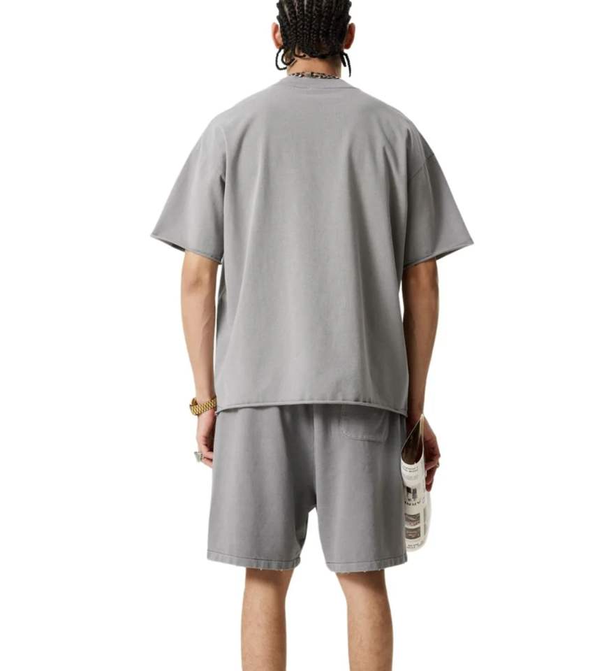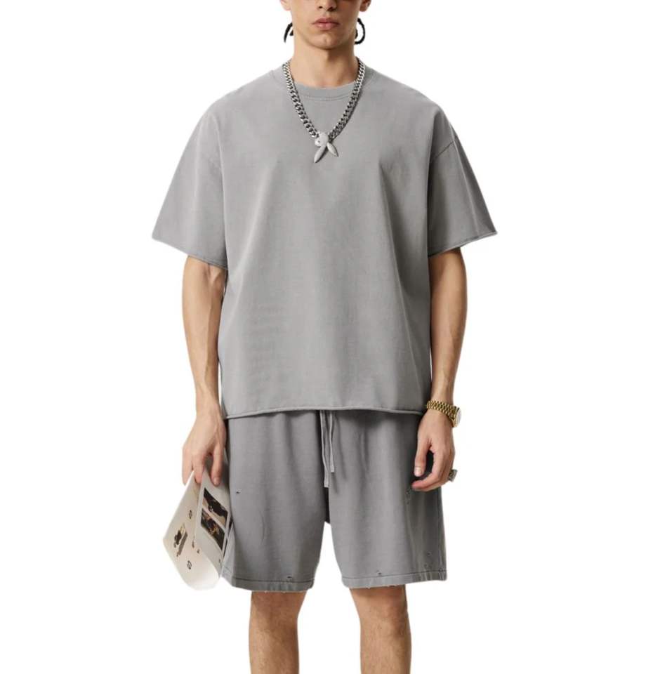 Ensemble de vêtements assortis pour hommes personnalisés pour l'été, t-shirts et shorts, 100% coton, ensemble de survêtement, shorts oversize lavés, ensemble 2 pièces