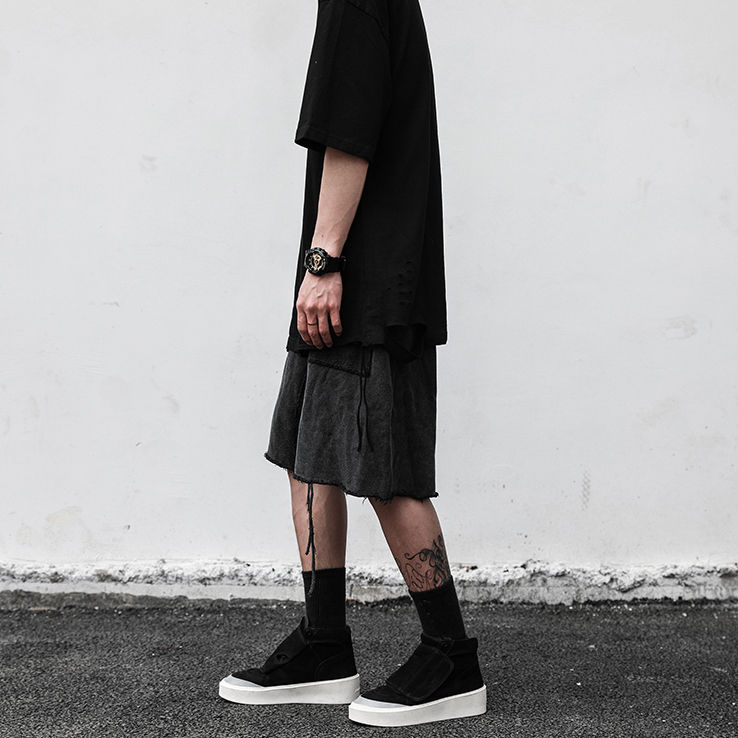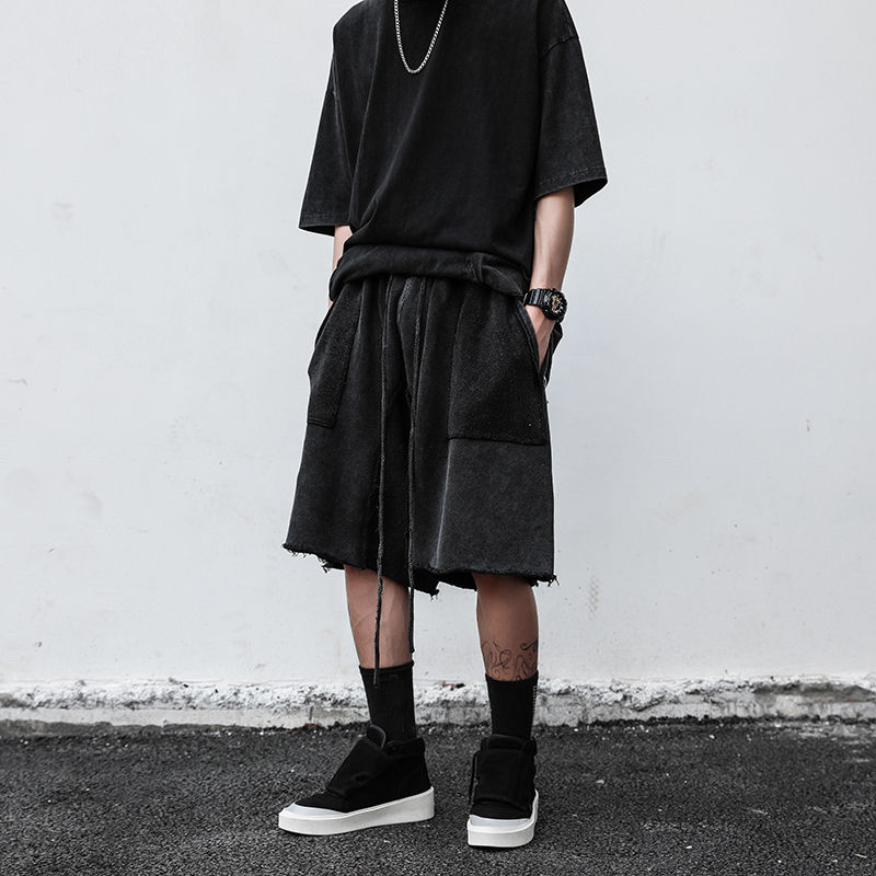 Short d'été personnalisé Short de sport noir en cours d'exécution Pantalon avec logo imprimé Short pour homme Vintage en détresse délavé