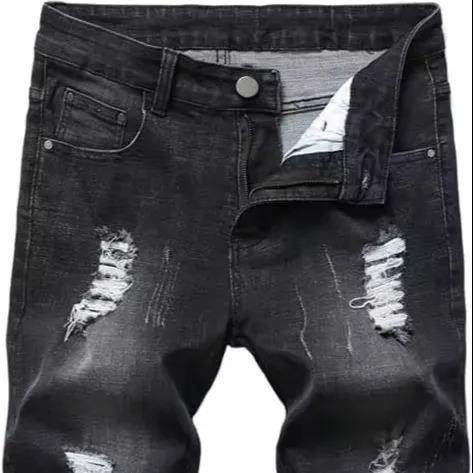 Custom Summer Streetwear Straight Jorts Baggy Distressed Dark Washed Cotton Denim Shorts Men Vintage Fashion Jeans Men Shorts