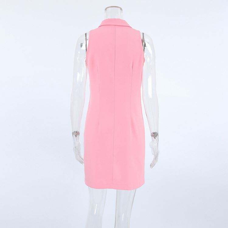 Robe mini moulante blanche personnalisée pour femme, élégante, en maille, sans manches, col polo, boutonnée, idéale pour l'été