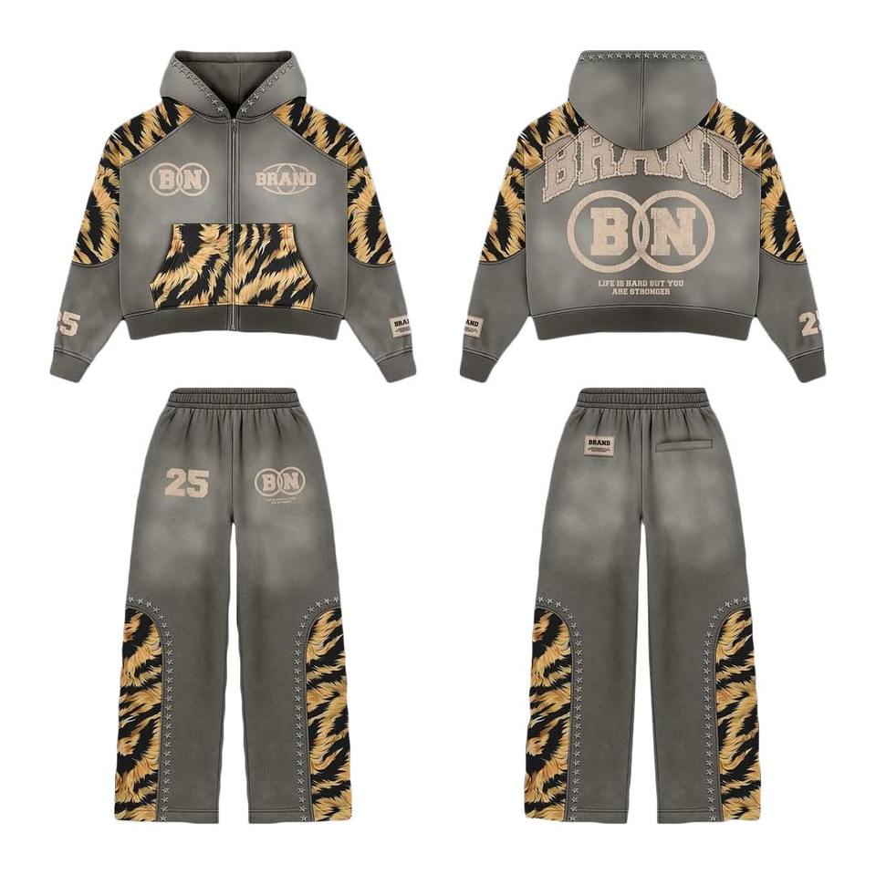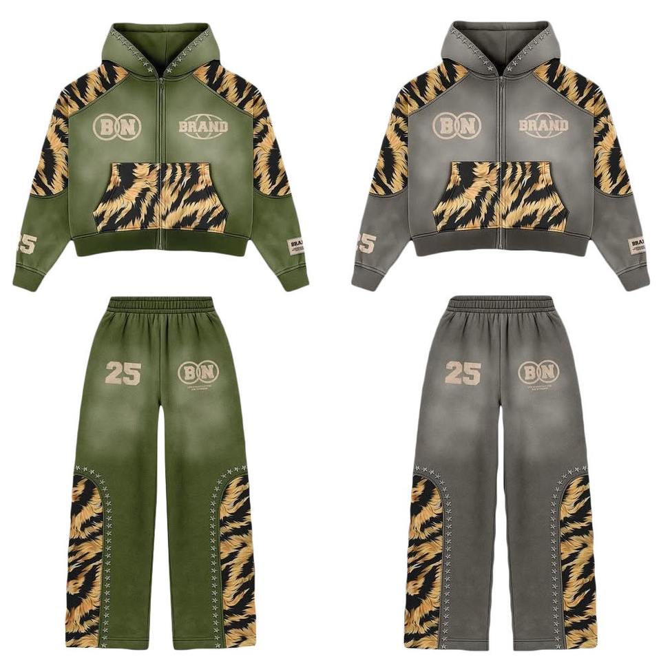 Survêtement personnalisé avec impression sérigraphique effet soleil, matière de qualité supérieure, look tendance pour le streetwear ou les tenues décontractées, unisexe.